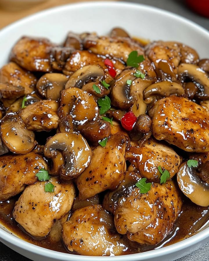 Hähnchen mit schwarzem Pfeffer und Champignons