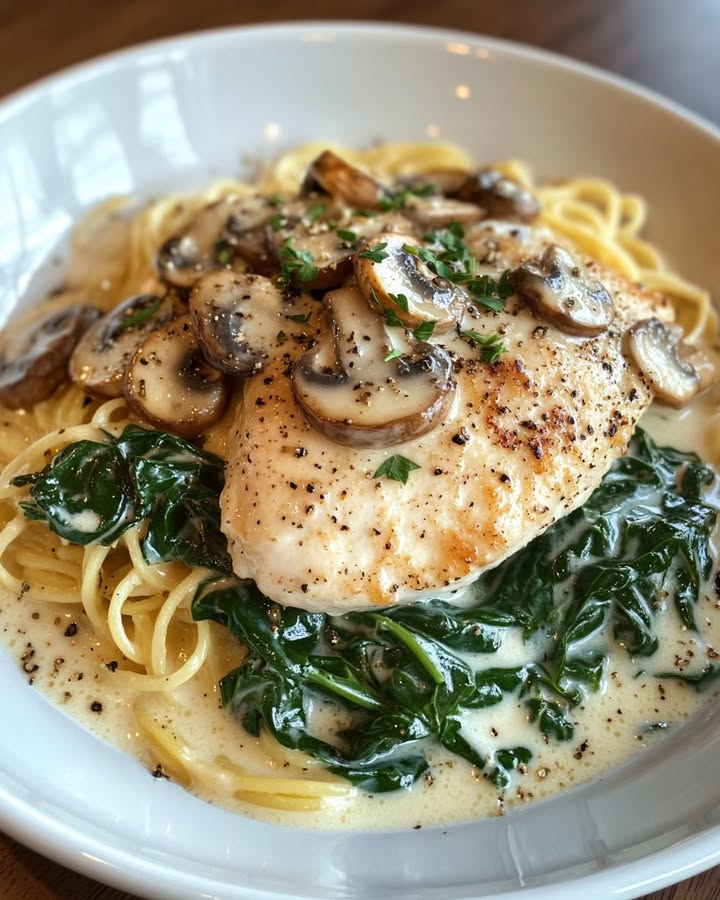Hähnchen mit Spinat und Champignons in cremiger Parmesansoße