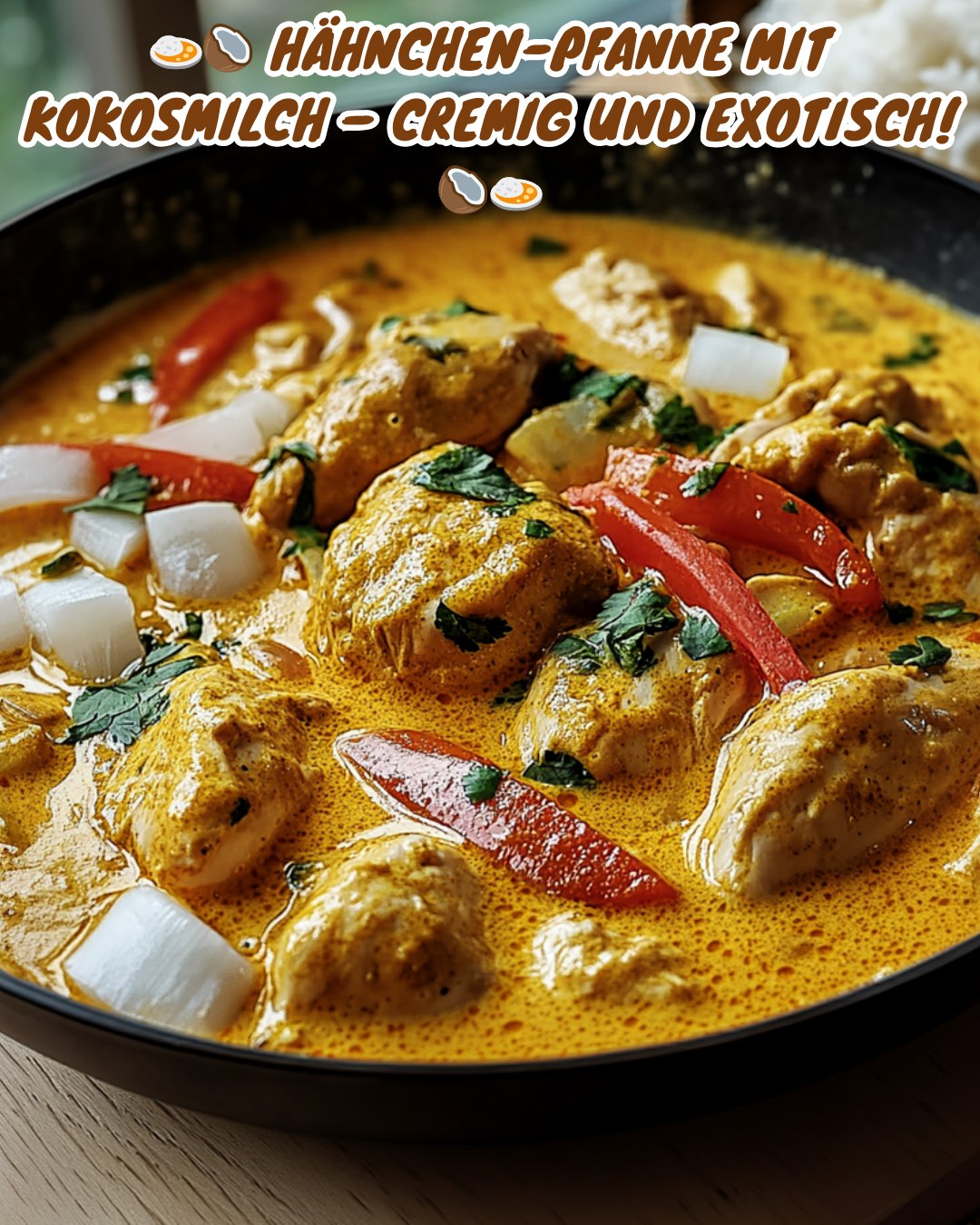 Zartes Hähnchen in aromatischer Kokosmilch-Sauce mit Gemüse und Gewürzen – einfach köstlich.