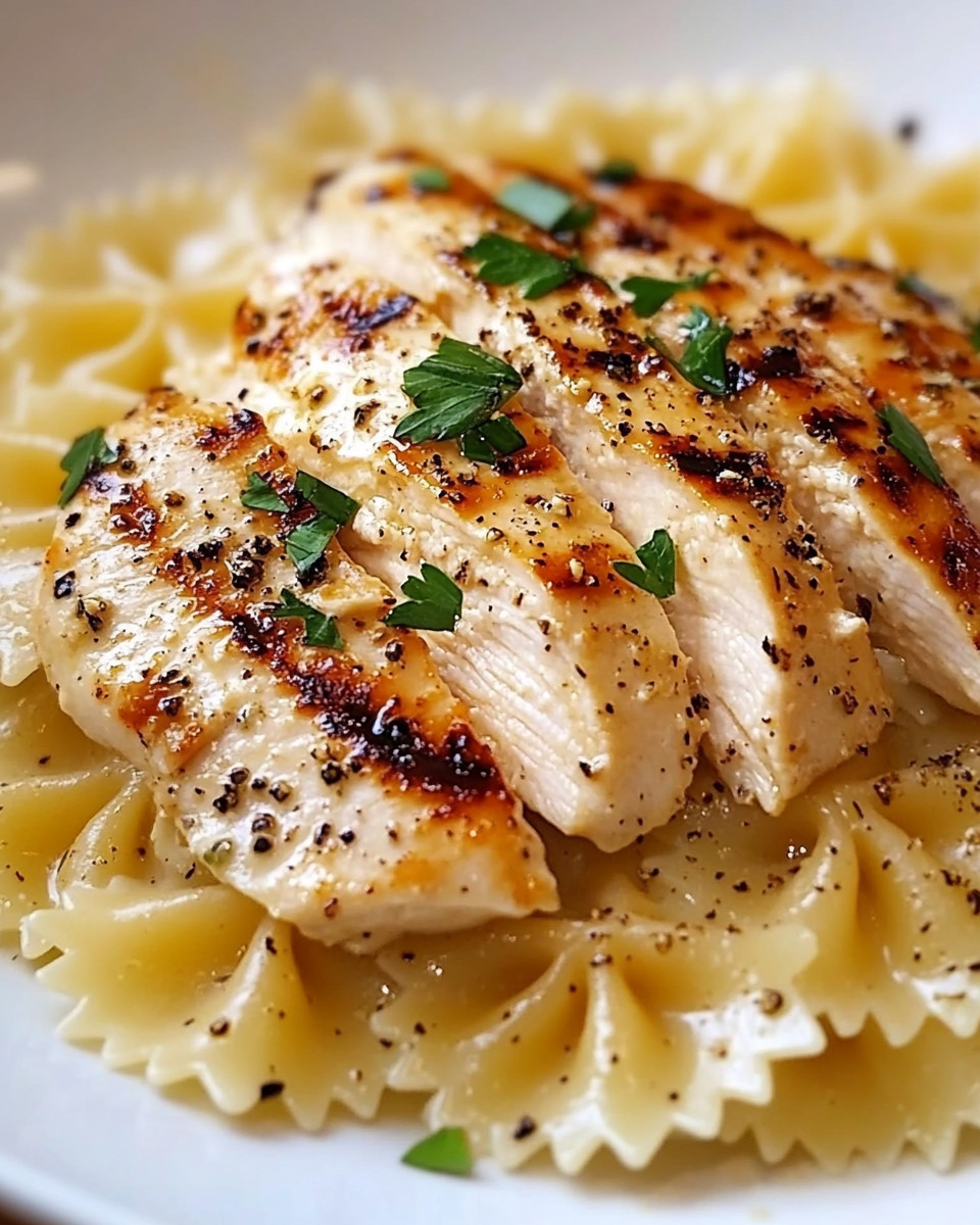 Zitronen-Knoblauch-Hühnchen mit cremigen Farfalle-Pasta! ![]()