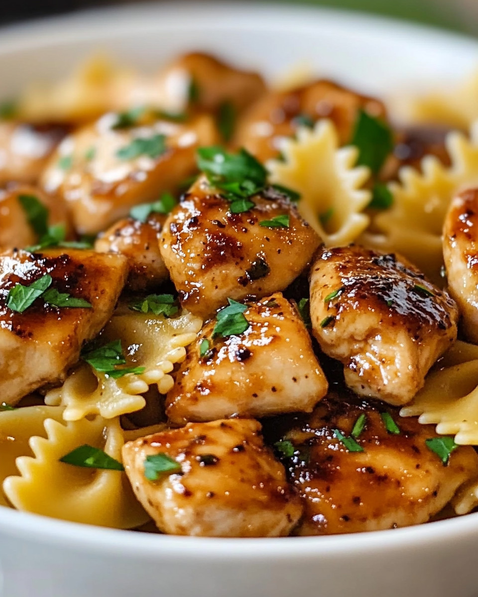Cremiges Zitronenknoblauch-Hühnchen mit Parmesan-Farfalle-Pasta!