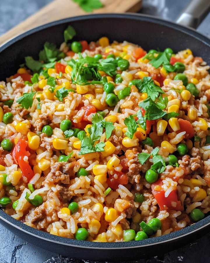 500 g fettarmes Hackfleisch, 250 g Reis,