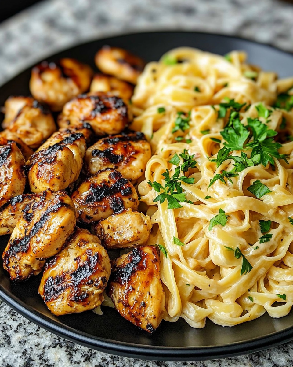 Goldene Knoblauchbutter-Hähnchen mit cremigen Parmesan-Linguine! 🍝🐔 Ein Gericht, das garantiert jeden begeistern wird – perfekt für ein schnelles, aber köstliches Abendessen. Lasst uns gleich loslegen!