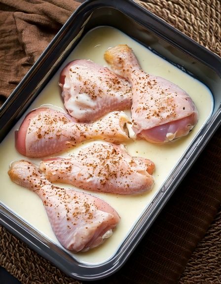 Nanas Geheimnis? Die Buttermilch! Diese einfache Zutat wirkt Wunder: Sie macht das Hähnchen perfekt zart und saftig und verleiht jedem Bissen eine dezente Würze, die den herzhaften Knusper der Kräuterkruste ausbalanciert. Das Marinieren des Hähnchens in Buttermilch verbessert nicht nur seinen Geschmack, sondern sorgt auch dafür, dass jedes Stück auch nach dem Braten saftig und saftig bleibt. Diese einfache, altbewährte Technik macht aus einem guten Brathähnchen ein unvergessliches Erlebnis. Mit den duftenden Kräutern, die sich durch die knusprige Panade ziehen, und der reichhaltigen Buttermilch, die alles abrundet, ist dieses Gericht mehr als nur ein Wohlfühlessen – es ist eine Hommage an die Tradition mit einer frischen, geschmackvollen Note. Buttermilch-Brathähnchen mit Kräutern