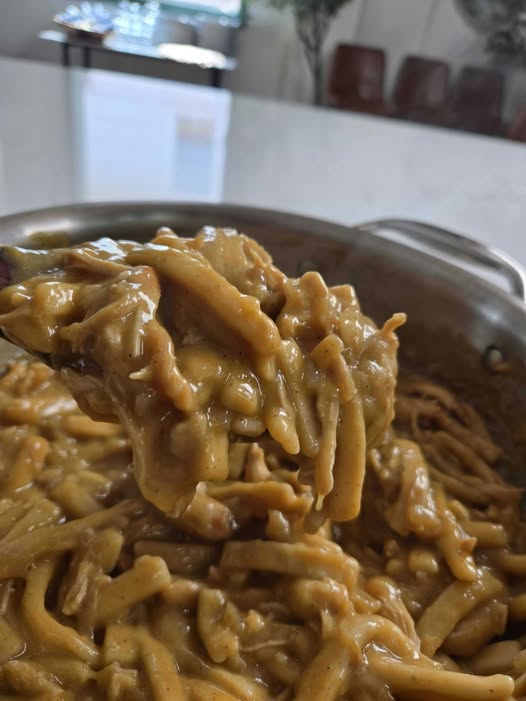Dieses wohltuende und cremige Gericht mit Hühnchen und Suppennudeln ist eine herzhafte und schmackhafte Mahlzeit, die sich ganz einfach zubereiten lässt.