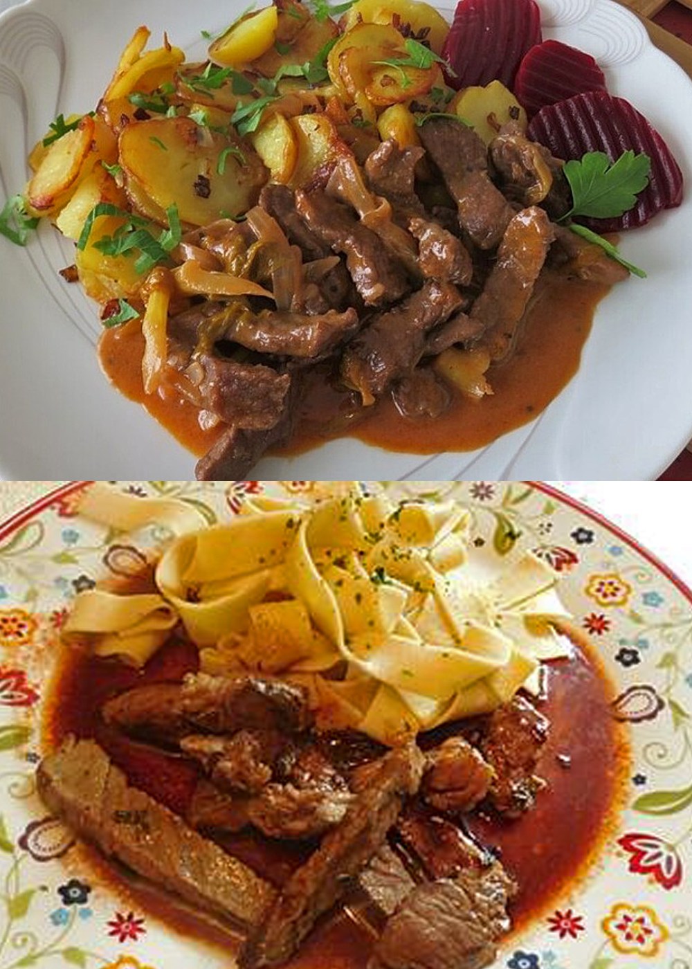 Ich bin traurig, weil niemand meine Arbeit schätzt. Geschmortes Rindfleisch mit Senf, 700 g Rinderhaxe, 2 Zwiebeln.
