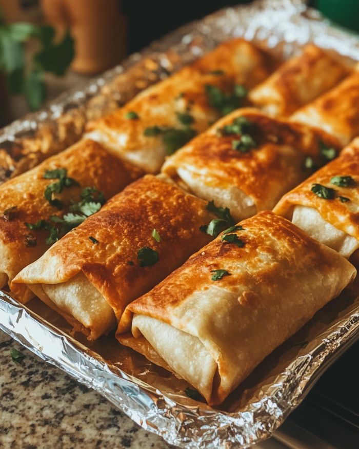 Diese gebackenen Chimichangas mit Rindfleisch und Käse passen wunderbar zu spanischem Reis oder einem frischen Gartensalat. Für eine echte Note des Mittleren Westens servieren Sie sie mit einem Klecks Sauerrahm und einer großzügigen Portion hausgemachter Salsa. Eine warme Schüssel Bohnenmus oder ein Mais- und Schwarzbohnensalat ergänzen das Gericht ebenfalls hervorragend und verleihen Ihrem Essen Farbe und Geschmack. Gebackene Chimichangas mit Rindfleisch und Käse