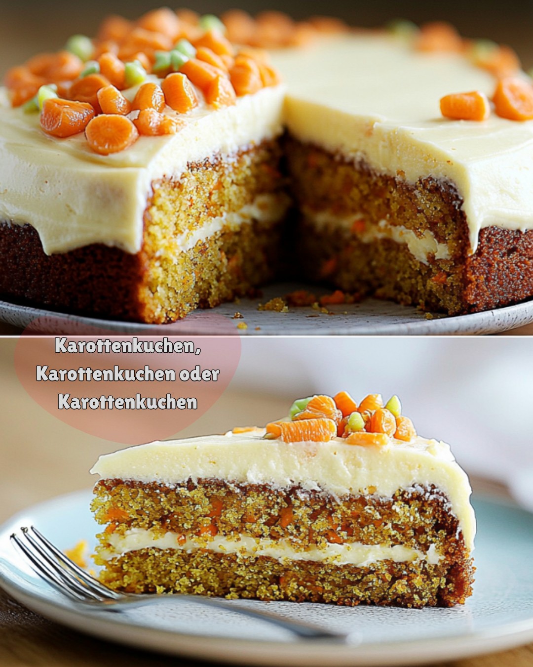 Dieser Karottenkuchen ist unglaublich saftig, mit einer perfekten Gewürzmischung und einer cremigen Glasur obendrauf.