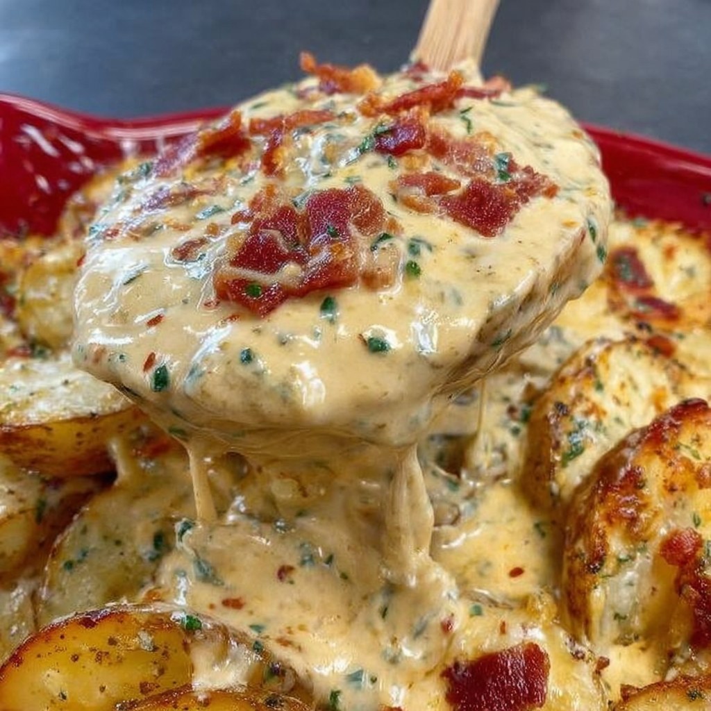 Kartoffeln mit Käse, Knoblauch und Speck gehören zu den unwiderstehlichsten Wohlfühlgerichten. Außen knusprig, innen weich, mit geschmolzenem Käse überbacken und mit der Kraft des Knoblauchs und dem rauchigen Geschmack des Specks verfeinert, sind sie mit jedem Bissen ein Hit. Perfekt für ein schnelles Abendessen, eine herzhafte Beilage oder sogar ein pflanzliches Hauptgericht mit ein paar Variationen – sie sind ein Hit bei Kindern und Erwachsenen gleichermaßen.