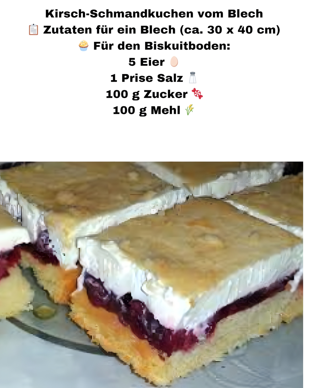 Du suchst einen Kuchen, der einfach gelingt, herrlich frisch schmeckt und dabei richtig Eindruck macht? Dann ist dieser Kirsch-Schmandkuchen vom Blech genau das Richtige! Eine fluffige Biskuitbasis trifft auf cremige Vanille-Schmand-Schicht und ein fruchtiges Kirsch-Topping – perfekt für Geburtstage, Familienfeste oder einfach so! 🎉