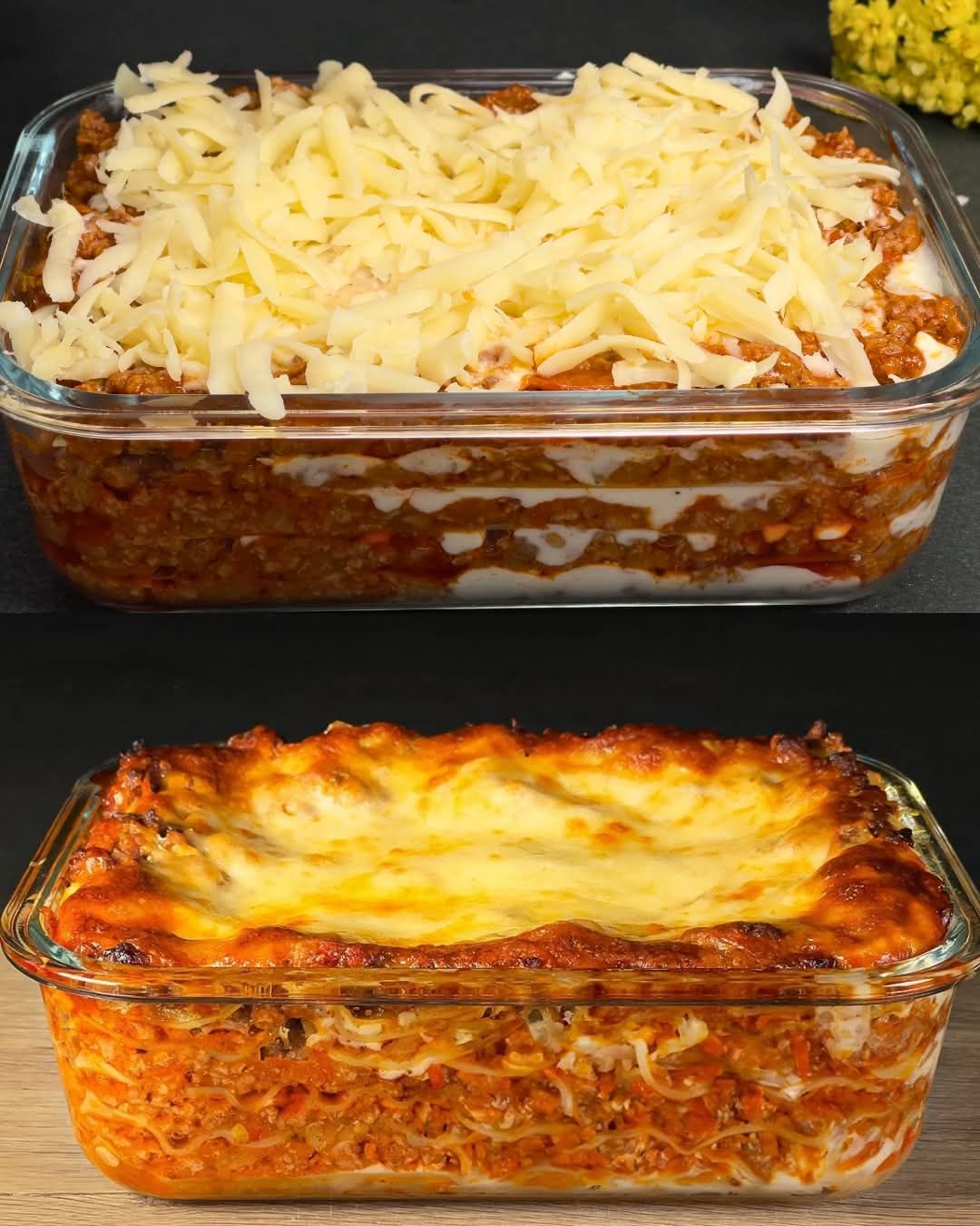 Diese klassische Rindfleischlasagne ist das ultimative Wohlfühlessen mit reichhaltiger und herzhafter Fleischsauce, cremiger Béchamelsauce und geschmolzenem Mozzarella. Die Kombination aus Hackfleisch, Tomaten und Gewürzen in der Fleischsauce wird durch die samtig-weiche Béchamelsauce perfekt ergänzt und macht jeden Bissen zu einem Genusserlebnis. Diese Lasagne ist ideal für Familienessen, besondere Anlässe oder einfach immer dann, wenn Sie Lust auf eine sättigende und herzhafte Mahlzeit haben. Servieren Sie dazu frischen Salat oder Knoblauchbrot für eine komplette Mahlzeit, von der jeder nach einem Nachschlag verlangt.