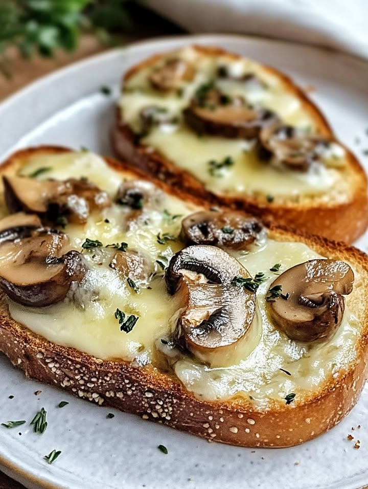 Knusprige Käse-Champignon-Knoblauch-Toasts