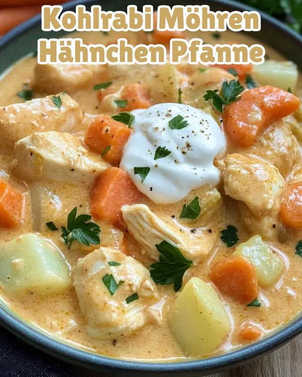 Kohlrabi-Möhren-Hähnchen-Pfanne – Schnell und cremig