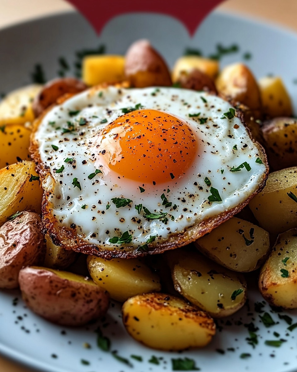 Leberkäse mit Spiegelei und Bratkartoffeln