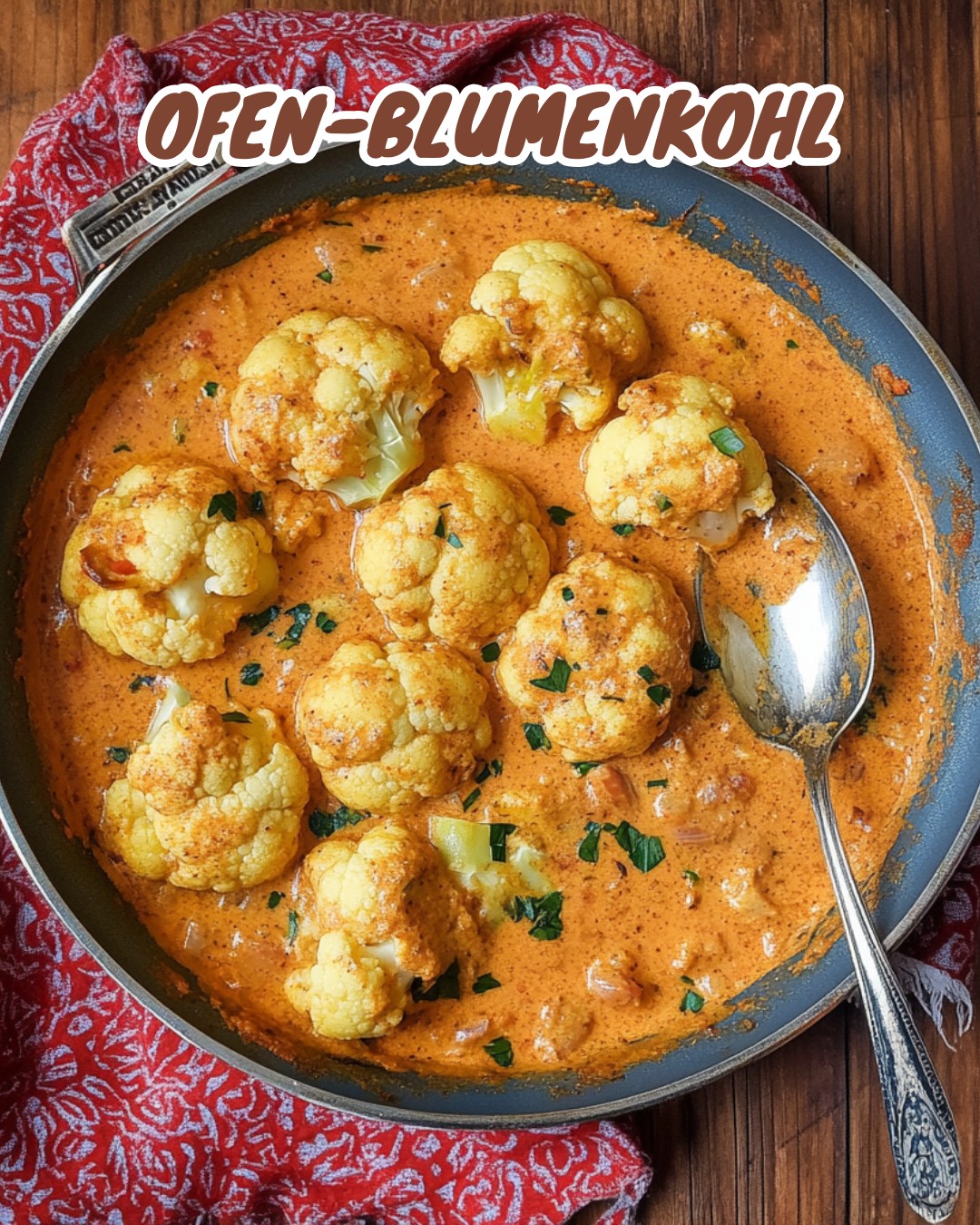 Würziger Blumenkohl mit cremiger Käse-Sahne-Soße, im Ofen gratiniert – einfach köstlich!