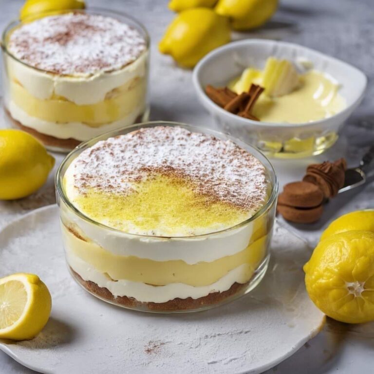 Dieses exquisite Dessert vereint die cremige, köstliche Textur des traditionellen Tiramisu mit den spritzigen Zitrusnoten von Limoncello, Italiens beliebtem Zitronenlikör.