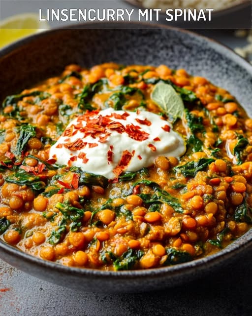 Ein köstliches veganes Linsengericht, das cremige Kokosmilch mit frischem Spinat kombiniert – schnell, einfach und sättigend!