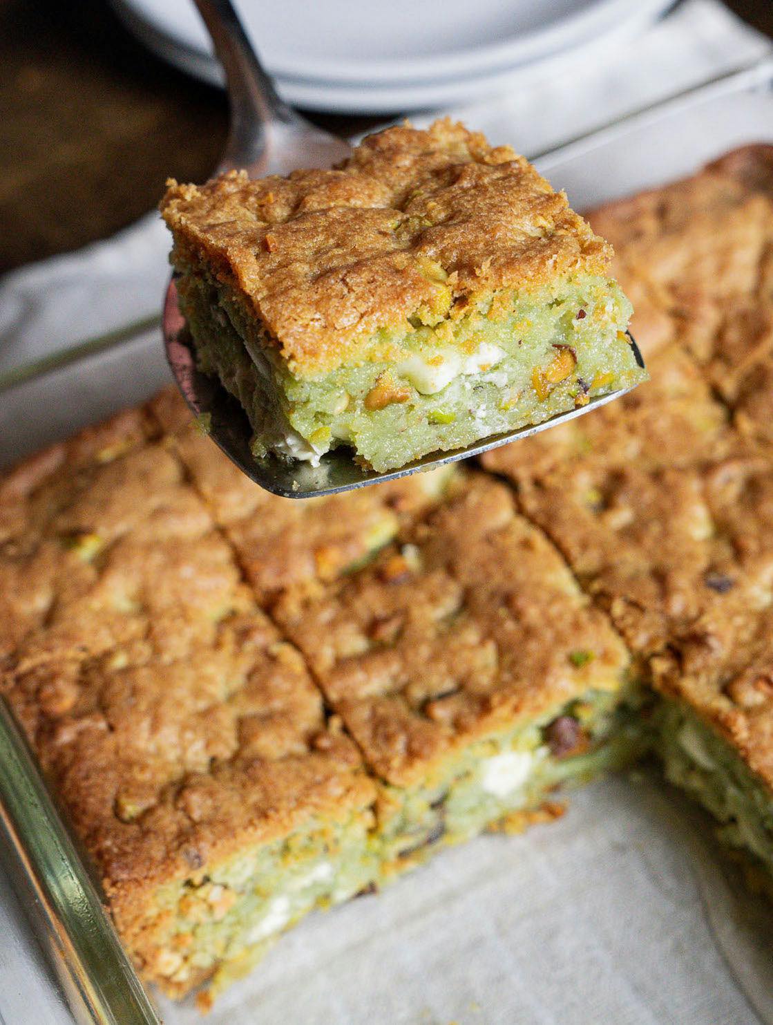 Diese Pistazien-Blondies sind eine köstliche Variante des klassischen Blondies und verleihen ihm den einzigartigen Geschmack und die leuchtende Farbe von Pistazien. Die Zugabe von Instant-Pistazienpuddingpulver sorgt für eine wunderbar zähe Textur und verstärkt den nussigen Geschmack, während weiße Schokoladenstückchen für eine süße Note sorgen. Diese Riegel sind einfach zuzubereiten und perfekt für alle, die den unverwechselbaren Geschmack von Pistazien lieben.