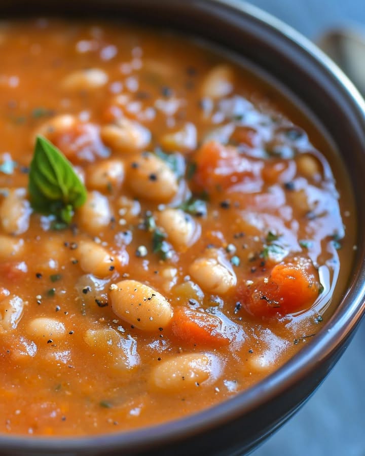 Im Slow Cooker geröstete Tomaten- und weiße Bohnensuppe