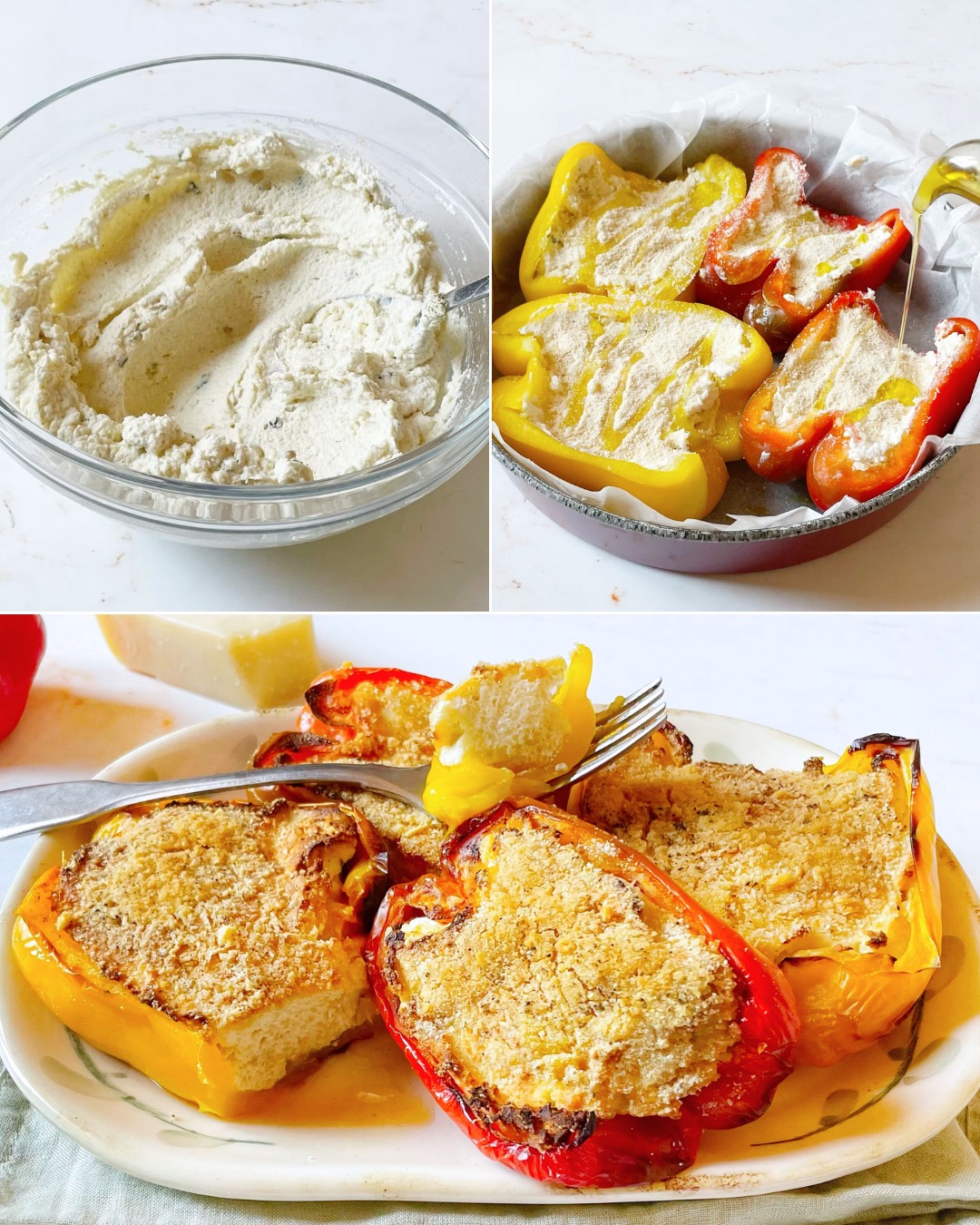 Mit Ricotta gefüllte Paprikaschoten sind ein einfaches und leckeres Gericht, perfekt als Vorspeise oder vegetarischer Hauptgang. Sie sind leicht zuzubereiten und können heiß oder bei Zimmertemperatur serviert werden.