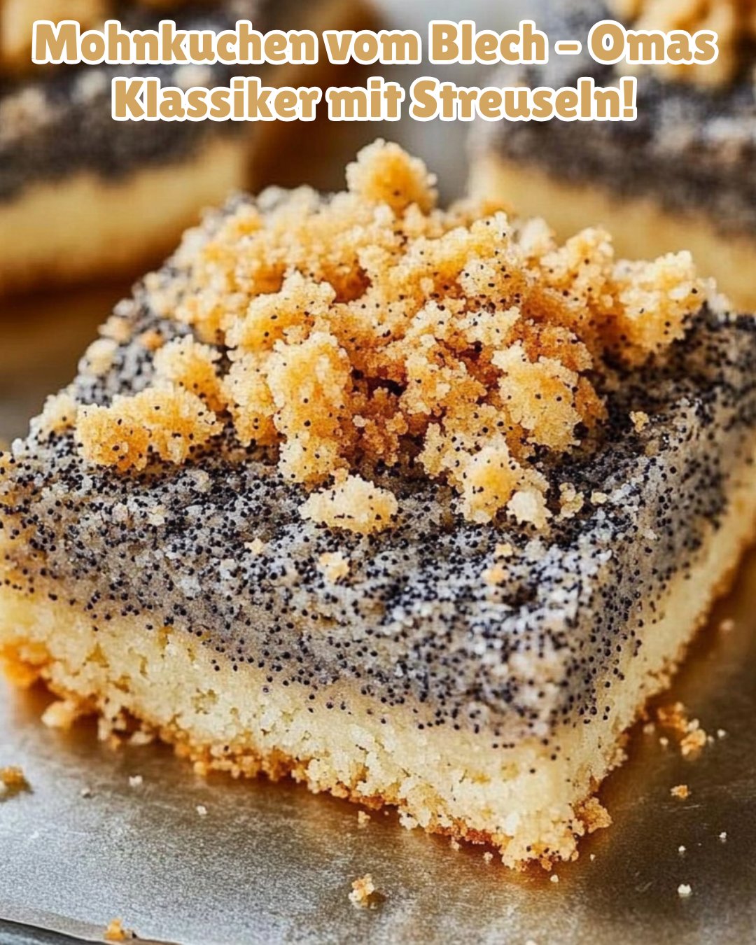 Knuspriger Boden, cremige Mohnfüllung und knusprige Streusel – ein echter Blechkuchen-Klassiker!