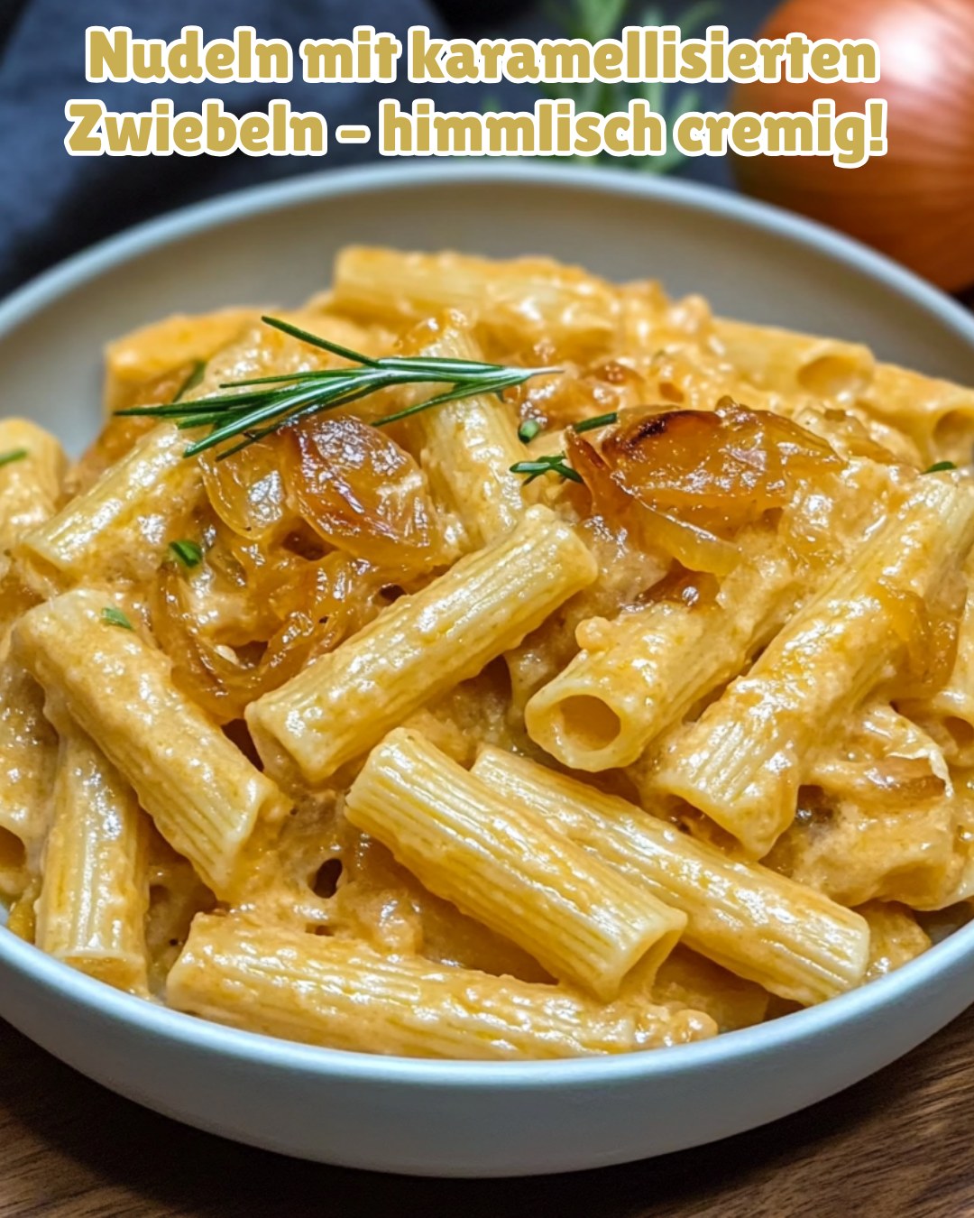 Aromatische Nudeln mit karamellisierten Zwiebeln, cremigem Brie und frischen Kräutern – perfekt würzig!