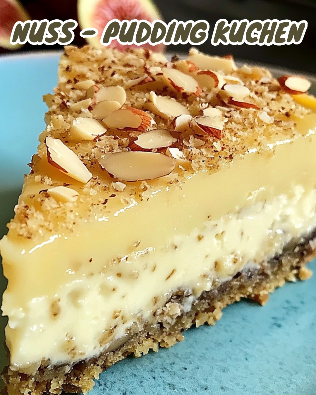 Kurzbeschreibung: Ein saftiger Nussboden, cremiger Pudding und ein knuspriger Mandeltopping – Genuss pur!