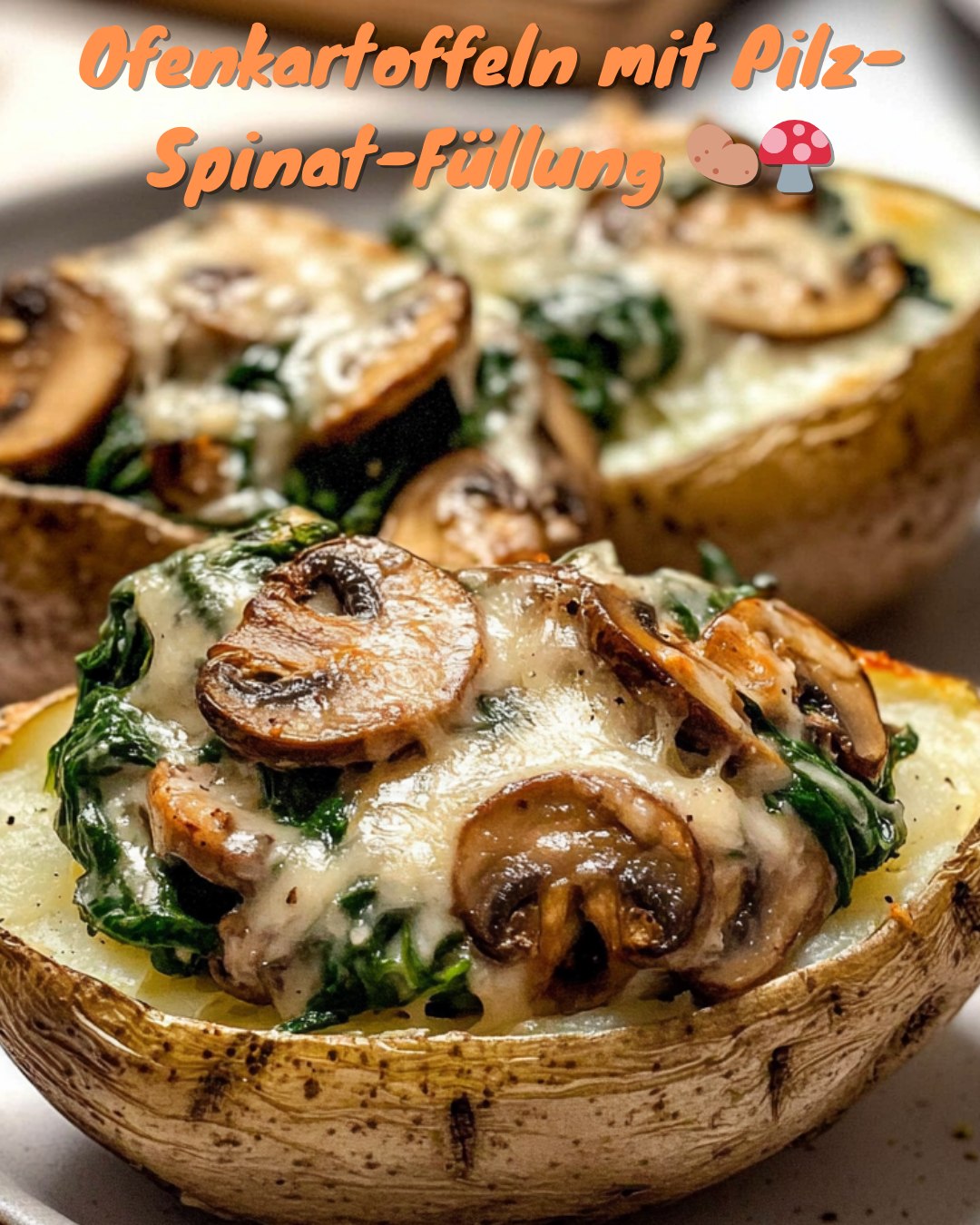 Cremige Pilz-Spinat-Füllung auf knusprigen Ofenkartoffeln – das perfekte herzhafte Gericht! ![]()