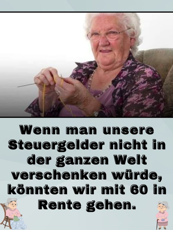 „Früher“, murmelte sie, „haben wir unsere Steuern gezahlt, und dafür gab’s Rente mit 60. Heute schenken wir das Geld in der ganzen Welt herum – und sollen bis 70 arbeiten!“