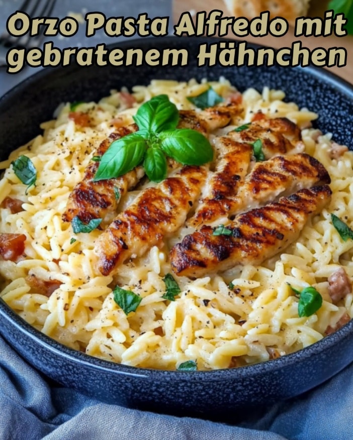 Cremige Orzo Pasta mit zartem Hähnchen, aromatischen Gewürzen und Parmesan – perfekt für jeden Tag!