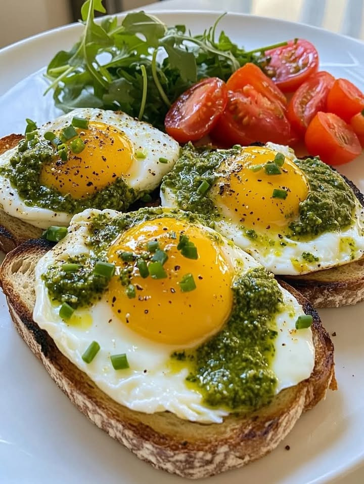 Pesto-Eier auf Sauerteig-Toast