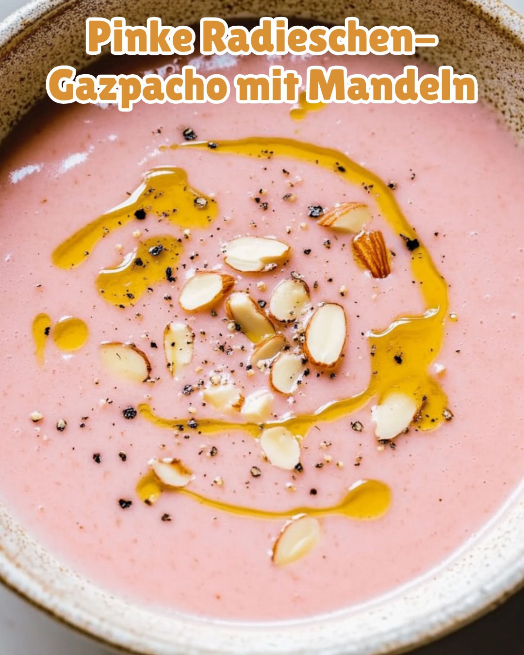 Erfrischend cremige, leicht scharfe Kaltschale mit Radieschen und Mandeln – perfekt für heiße Tage.