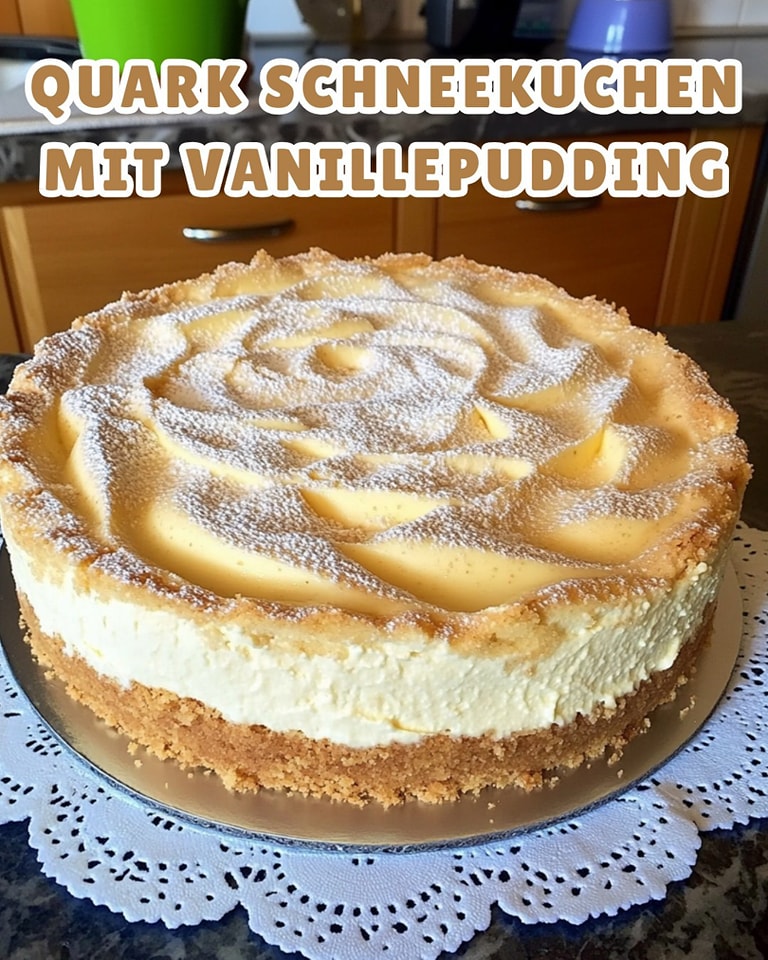 Kurzbeschreibung: Köstlicher Quark-Schneekuchen mit Vanillepudding und luftiger Baiserhaube – ein Genuss für jeden Anlass!