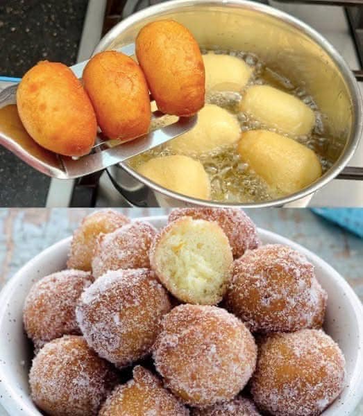 450 g Quark, 150 g Zucker, 250 g Mehl, 2 Eier, 1 Päckchen Backpulver, 1 Vanilleschote oder 1 TL Vanillezucker, Frittieröl