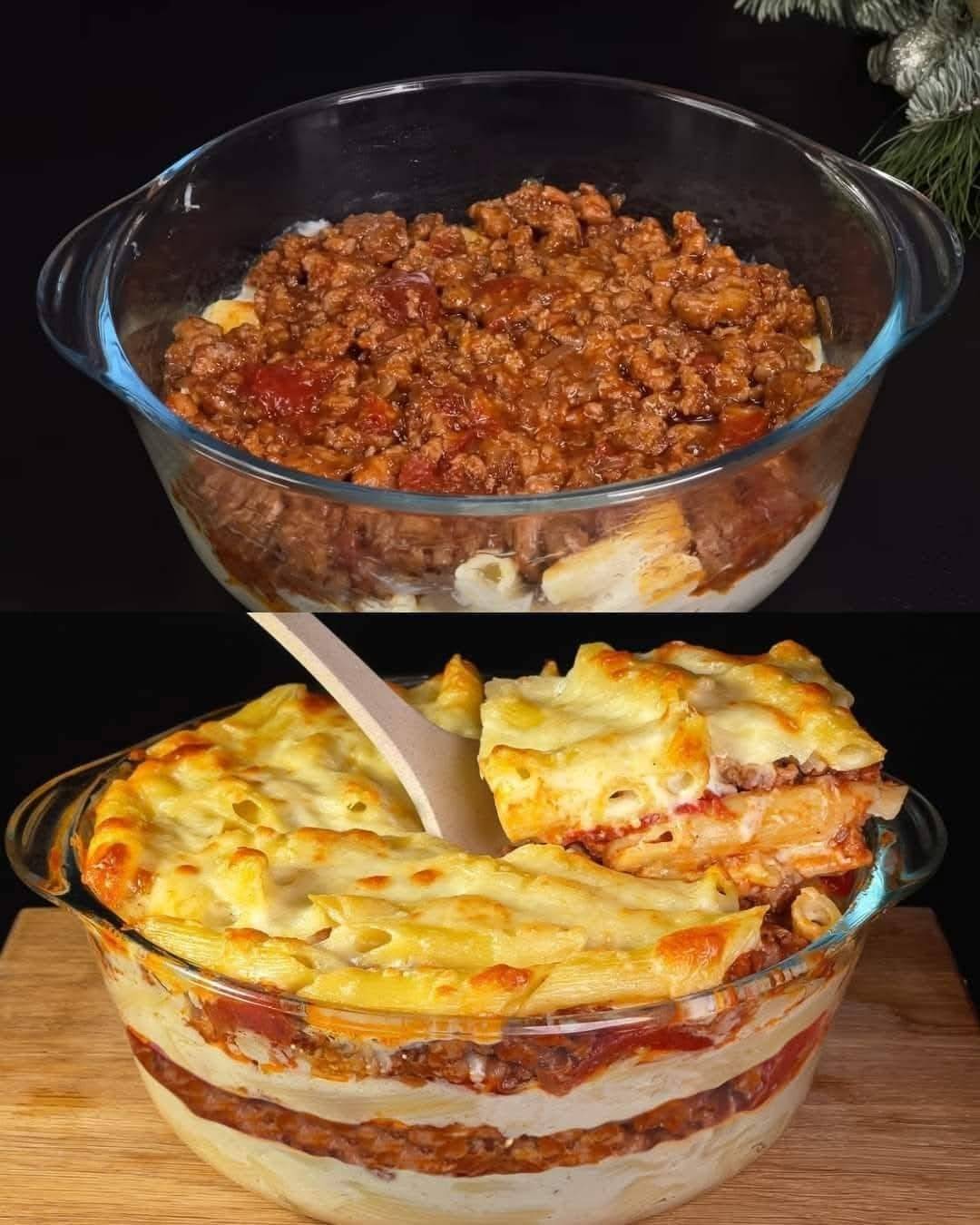 Diese gebackenen Penne mit Schweinefleisch und Béchamelsauce kombinieren herzhaftes Schweinehackfleisch, kräftigen Rotwein und cremige Béchamelsauce mit perfekt gekochter Pasta und einem geschmolzenen Käse-Topping. Es ist ein wohltuendes und köstliches Gericht, das einen Hauch Italien zu Ihnen nach Hause bringt – perfekt für Familienessen oder besondere Anlässe.