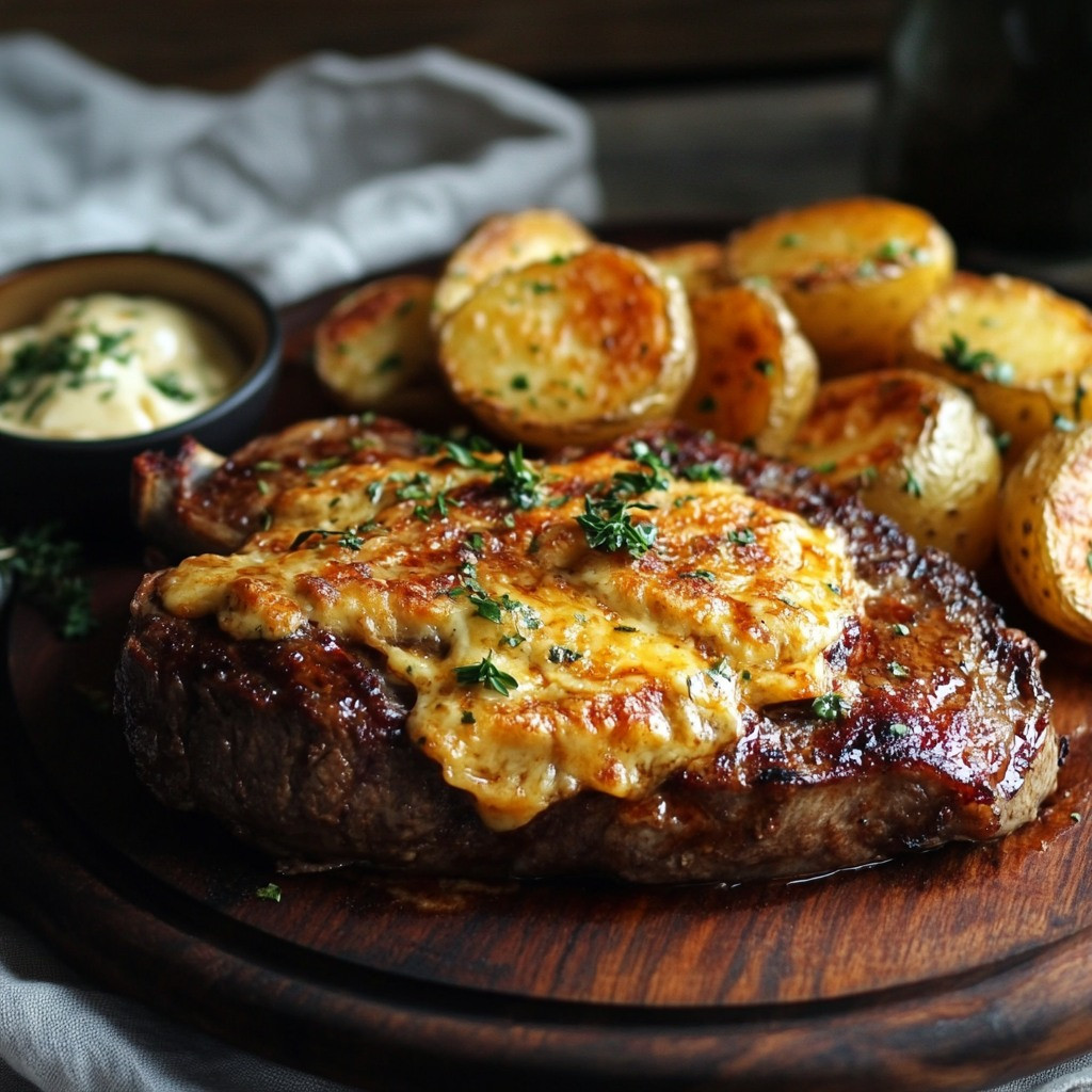 Rib-Eye-Steak mit gegrillten Käsekartoffeln