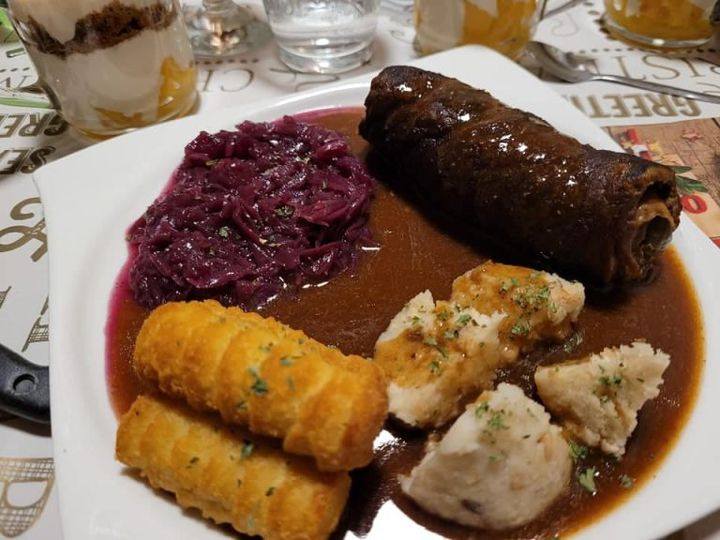 Wer deftige Hausmannskost liebt, kommt an diesem Klassiker nicht vorbei: Zarte Rinderrouladen, geschmort in würziger Sauce, dazu aromatisches Rotkraut und fluffige Semmelknödel – ein Sonntagsgericht wie aus Kindheitstagen!