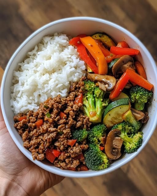 Rindfleisch-Gemüse-Reisschale mit Wok-Aroma