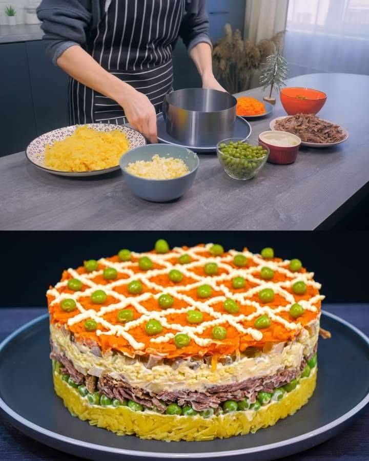 Haben Sie genug vom traditionellen Olivier-Salat? Bringen Sie dieses Neujahr Abwechslung mit diesem köstlichen Rindfleisch-Schichtsalat – eine geschmackvolle und festliche Ergänzung für Ihren Festtagstisch. Mit herzhaftem gekochtem Rindfleisch, frischem Gemüse und der cremigen Note von Gurken und Mayonnaise ist dieser Salat nicht nur sättigend, sondern auch wunderschön in Schichten präsentiert – perfekt für einen besonderen Anlass. Mit einer Ringform zaubern Sie ein elegantes Gericht, das Ihre Gäste beeindrucken wird und gleichzeitig eine köstliche Alternative zum üblichen Silvester-Buffet bietet.