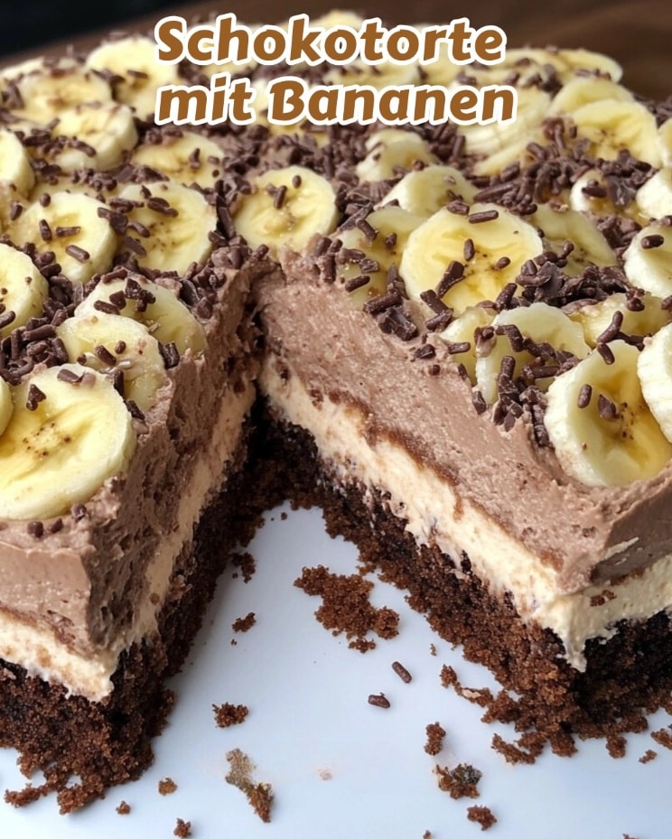 Diese Schokotorte mit Bananen ist in 20 Minuten fertig, ohne Ofen und super lecker! ![]()