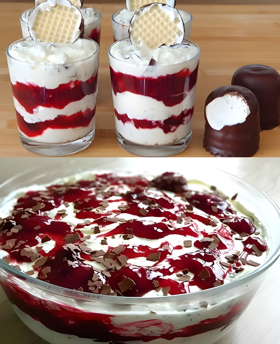 Zuerst die Waffelböden von den Schokoküssen trennen. Die Schaummasse in eine Schüssel geben und glatt streichen.