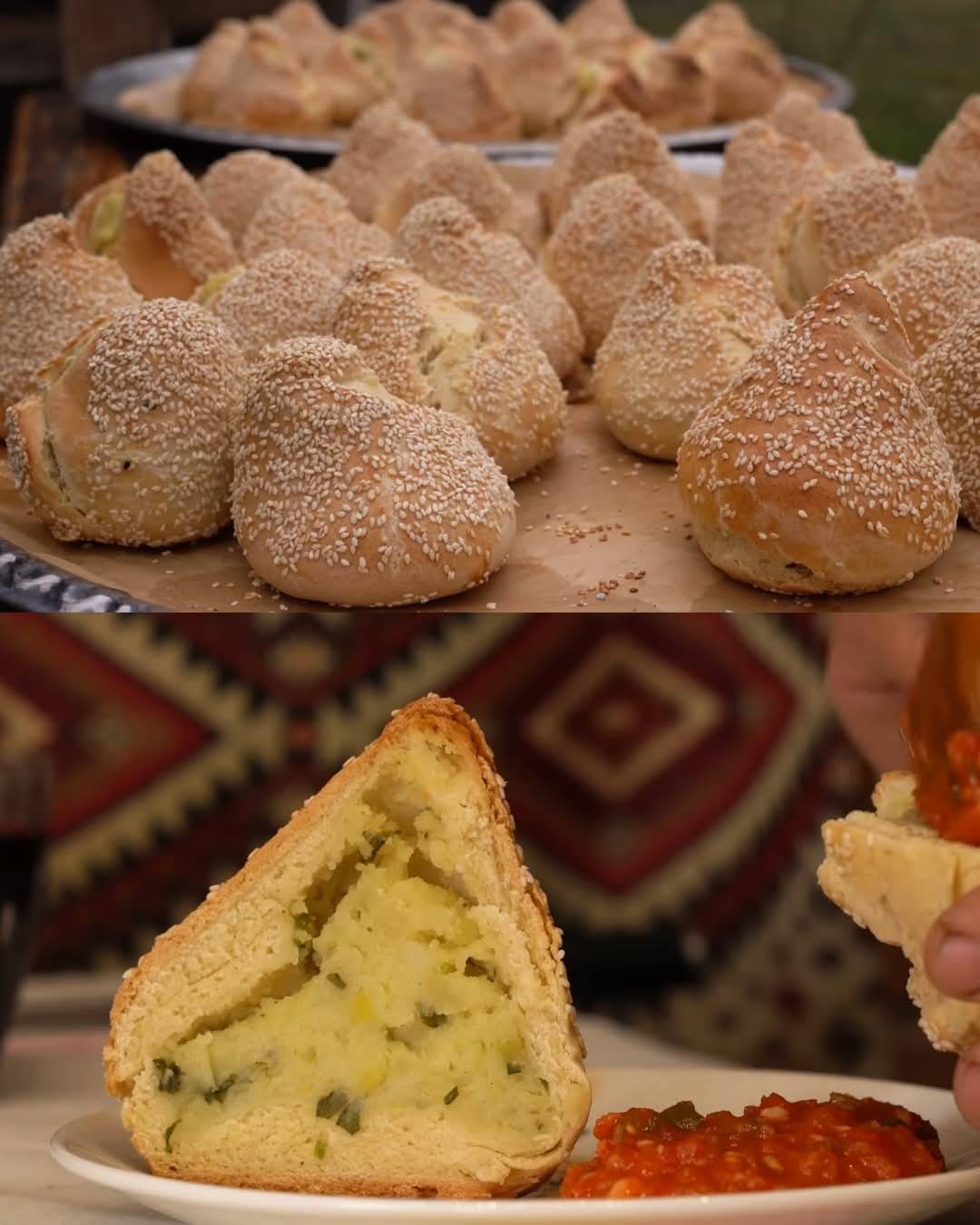 Diese Sesambrötchen mit Kartoffel-Käse-Füllung sind ein köstlicher, herzhafter Leckerbissen für jeden Anlass. Mit ihrem weichen, lockeren Teig, der eine reichhaltige, würzige Kartoffelfüllung mit Käse umhüllt, sind diese Brötchen ein echter Publikumsliebling. Die knusprige Sesamhülle verleiht ihnen eine unwiderstehliche Textur, die jeden Bissen unvergesslich macht.