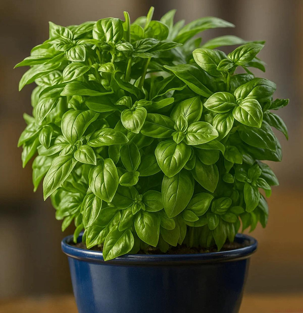 Mit einer Basilikumpflanze zu Hause haben wir frische Blätter, mit denen wir unsere Gerichte verfeinern können. Außerdem verströmt Basilikum einen angenehmen Duft, der sich im ganzen Haus verbreitet und Insekten fernhält.