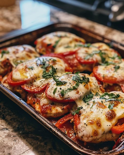 Drei-Käse-Hühnchen-Parmesan mit Paprika Portionen