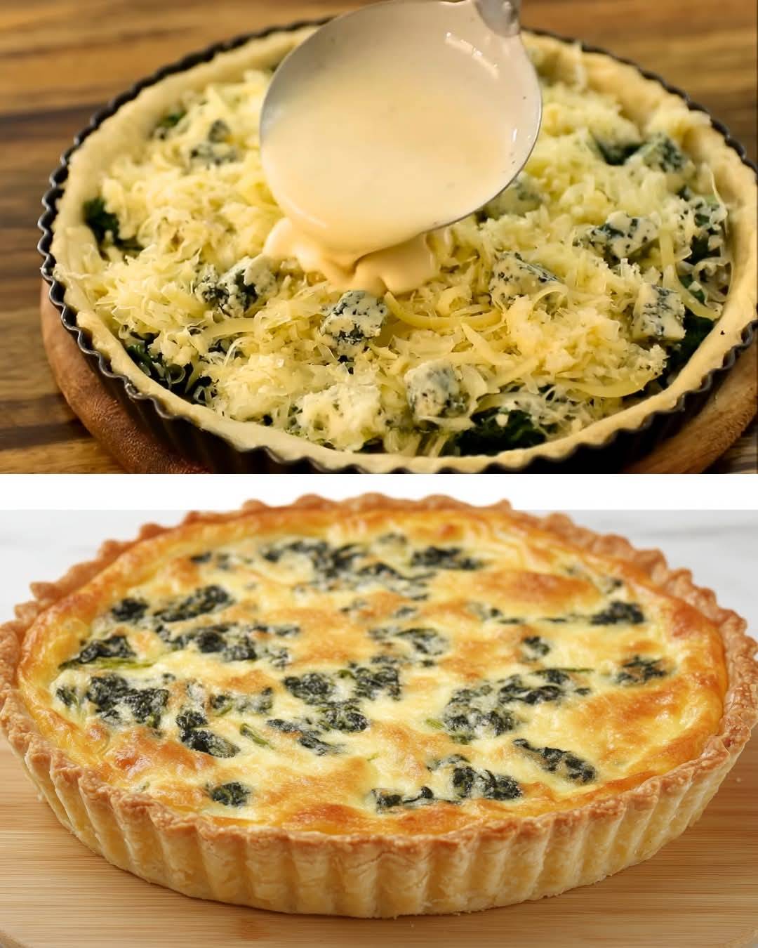 Diese Spinat-Käse-Quiche ist ein reichhaltiger, cremiger und herzhafter Genuss. Sie kombiniert einen butterweichen, blättrigen Boden mit einer Füllung aus frischem Spinat, aromatischen Zwiebeln und zwei köstlichen Käsesorten – Gruyère und Gorgonzola. Perfekt für Brunch, Mittag- oder Abendessen – diese Quiche ist elegant und sättigend zugleich.