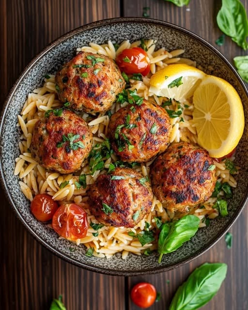 Ultimative Zitronen-Kräuter-Hähnchenbällchen mit cremigem Orzo