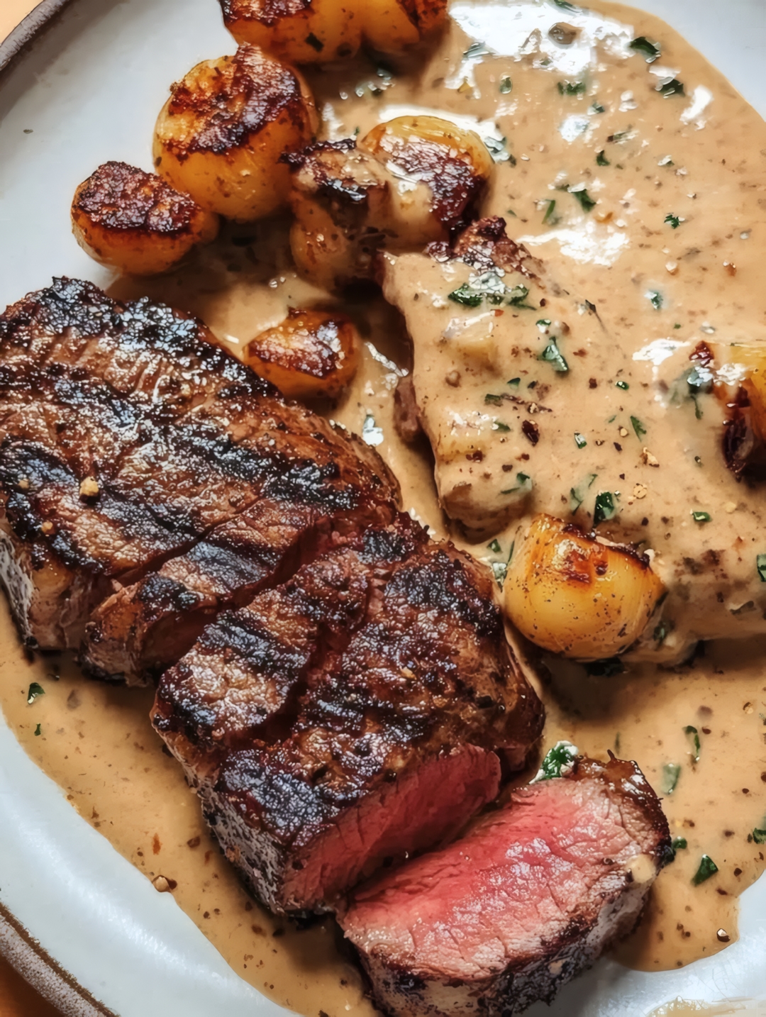 🥩Steak mit cremiger Knoblauch-Bourbon-Sauce 🧄