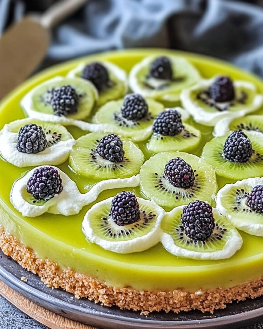 Veganer No-Bake-Kiwi-Käsekuchen Dieser vegane Kiwi-Käsekuchen ohne Backen ist eine gesündere Interpretation des Klassikers.