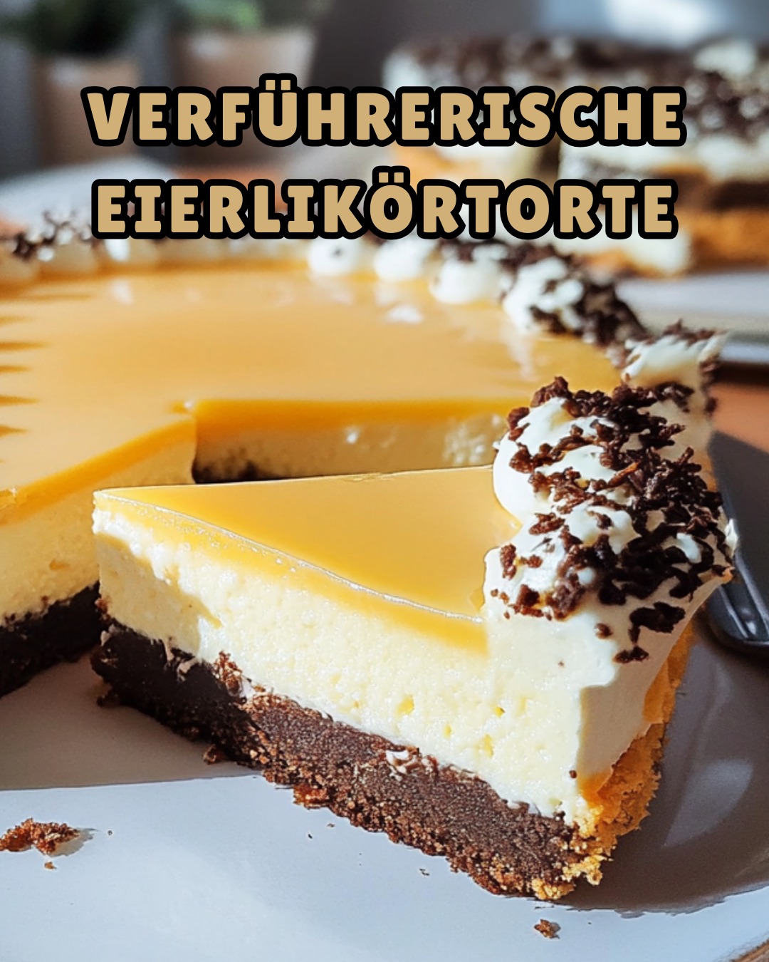 Eine cremige Eierlikörtorte mit saftigem Schoko-Mandelboden und Sahnefüllung – ideal für Feste!