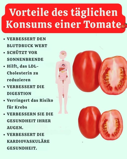 Der Konsum von Tomaten kann die Entwicklung von Herz-Kreislauf-Erkrankungen wie Herzinfarkt und Schlaganfall vorbeugen. ❤️🩺
